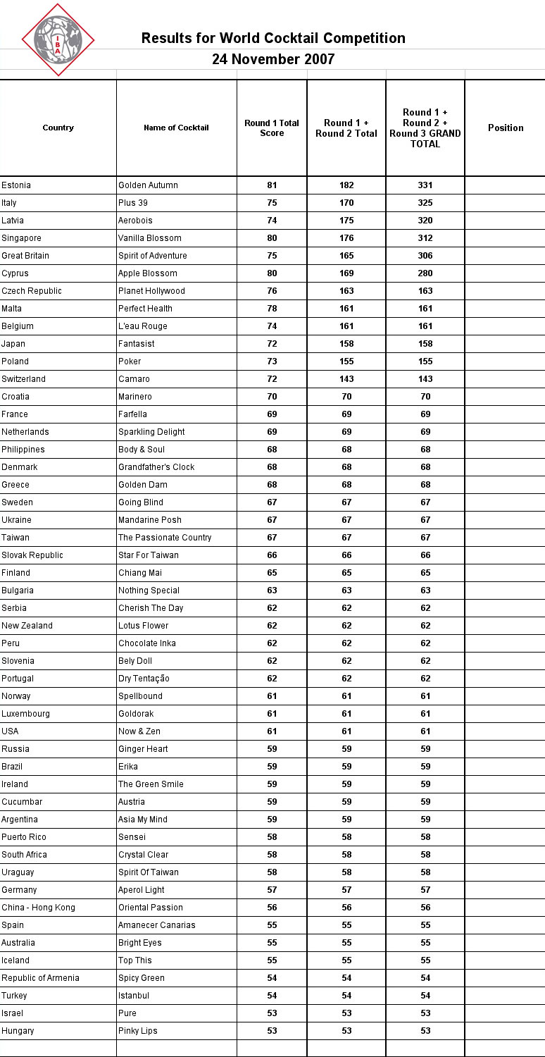 - ^ Соревнования по коктейлю Гильдия барменов Соединенного Королевства и обучение барменов в Великобритании
